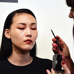 L to R : Photographing CHANEL’s Spring/Summer 2018 makeup collection at the regional press event in Seoul / Lucia Pica demonstrating the makeup looks on models