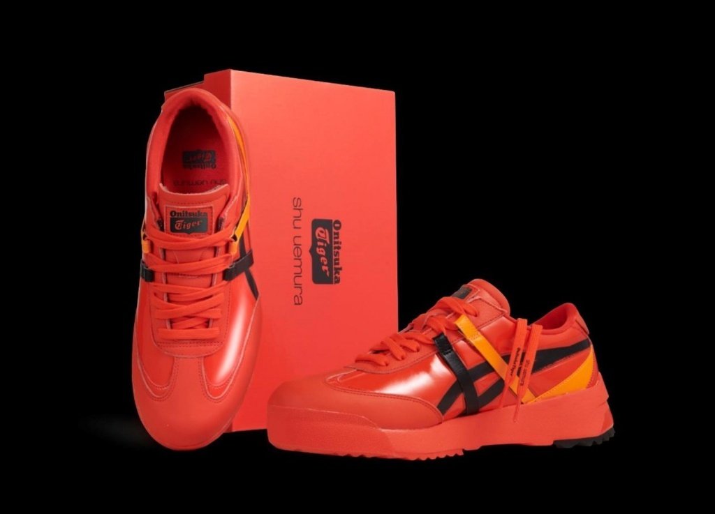 What we do know is that there will be a limited edition Onitsuka Tiger shoe that will launch as part of this shu uemura collaboration. It will be a brand new model called “Delegation EX”, and will feature black and summer orange stripes on a “passionate Tokyo red” base. The sneaker will be available from 1-31st May at Onitsuka Tiger stores in Asia and here’s what it looks like: